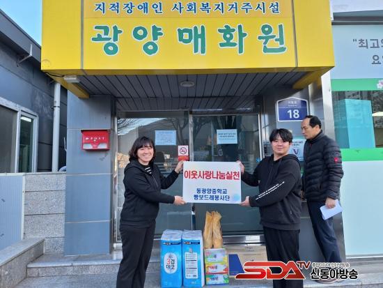 [½Åµ¿¾Æ¹æ¼Û Àü³²±¤¾ç=À̽ŵ¿±âÀÚ] µ¿±¤¾çÁßÇб³ÀÇ »§º¸µå·¹´Â Áö³ 30ÀÏ, ¿¬¸»À» ¸Â¾Æ '»§º¸µå·¹ ÀÏÀÏ ÀÚ¼± Ä«Æä'¶ó´Â üÇè ºÎ½º¸¦ ¿î¿µÇÏ¿© Áö¿ª»çȸ¿¡ µû¶æÇÑ ³ª´®À» ½ÇõÇß½À´Ï´Ù. »§º¸µå·¹´Â '´ÞÄÞ»õÄÞÇÏ´Ù'¶ó´Â ¼ø¿ì¸®¸»¿¡ Á¦»§ Ȱµ¿À» ´õÇÑ À̸§À¸·Î, Áö¿ª»çȸ¿¡ ²À ÇÊ¿äÇÑ ¸ÀÀ» ³»´Â ÁÁÀº û¼Ò³âÀ¸·Î ¼ºÀåÇÏÀÚ´Â ½½·Î°ÇÀ» °¡Áö°í Ȱµ¿Çϴ û¼Ò³â Àç´É±âºÎ µ¿¾Æ¸®ÀÔ´Ï´Ù.