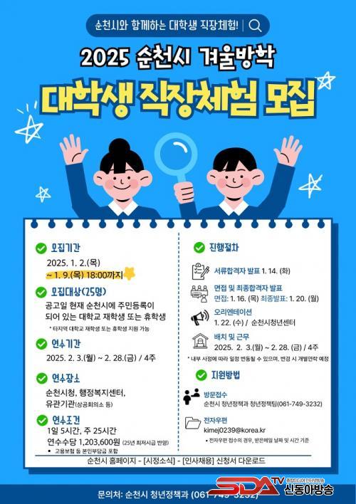 »çÁø=¼øÃµ½Ãû, 2025³â °Ü¿ï¹æÇÐ ´ëÇлý Á÷ÀåüÇè ¿¬¼ö»ý ¸ðÁý