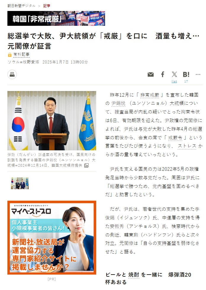 | | 7ÀÏ ¾Æ»çÈ÷½Å¹®Àº À±¼®¿°ú °°ÀÌ ±Ù¹«ÇÑ Ãø±ÙÀ» Àοë À±¼®¿ÀÌ ¼ú¸¸ ¸¶½Ã¸é °è¾öÀ» ¸»Çß´Ù°í º¸µµÇß´Ù. ¼Ò¸Æ 20ÀÜÀ» ¸¶½Ã´Â ¼öÁØÀ̶ó´Â ±â»ç. ¾Æ»çÈ÷½Å¹® °¥¹«¸®