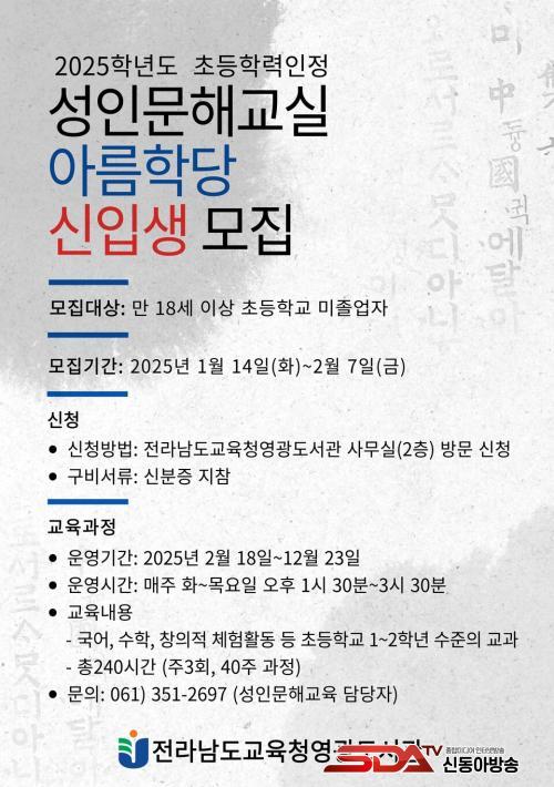 [½Åµ¿¾Æ¹æ¼Û Àü³²¿µ±¤=À̽ŵ¿±âÀÚ] Àü¶ó³²µµ±³À°Ã»¿µ±¤µµ¼­°üÀº 2025Çг⵵ ÃʵîÇзÂÀÎÁ¤ ¼ºÀι®Çر³À° ÇÁ·Î±×·¥ ¡®¾Æ¸§Çд硯ÀÇ 1´Ü°è ÇнÀÀÚ ¸ðÁýÀ» 1¿ù 14ÀϺÎÅÍ 2¿ù 7ÀϱîÁö ÁøÇàÇÑ´Ù.