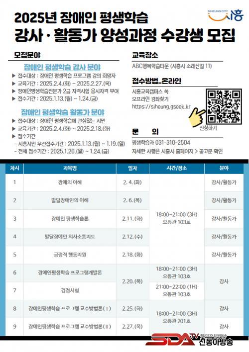 Ȱµ¿°¡ ºÐ¾ß´Â Àå¾ÖÀÇ ÀÌÇØ, ¹ß´ÞÀå¾ÖÀÎÀÇ ÀÇ»ç¼ÒÅë Áöµµ °úÁ¤ µîÀ» Æ÷ÇÔÇÑ ±³À°À¸·Î 2¿ù 4ÀϺÎÅÍ 2¿ù 18ÀϱîÁö 5ȸÂ÷ °Àǰ¡ ÁøÇàµÈ´Ù. °»ç ºÐ¾ß´Â Àå¾ÖÀÎ Æò»ýÇнÀ ÇÁ·Î±×·¥ °³¹ß·ÐÀ» Æ÷ÇÔÇØ 2¿ù 4ÀϺÎÅÍ 2¿ù 27ÀϱîÁö ÃÑ 8ȸÂ÷ °Àǰ¡ ÁøÇàµÈ´Ù.