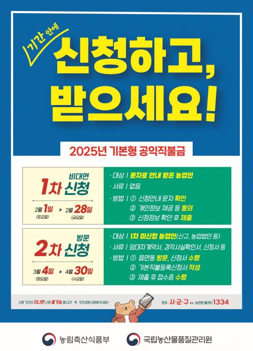 ¿ì¼± ³ó¾÷ÀÎ ±âÃÊ¼Òµæ ¾ÈÀü¸ÁÀÎ ±âº»Çü °øÀÍÁ÷ºÒ±Ý ¿¹»êÀ» Áö³Çغ¸´Ù 111¾ï ¿ø Áõ¾×µÈ 5õ15¾ï ¿øÀ» Æí¼ºÇß´Ù. ¸éÀûÁ÷ºÒ±Ý Áö±Þ´Ü°¡¸¦ Æò±Õ 5% ÀλóÇß´Ù. 1ha´ç 100¸¸~205¸¸ ¿øÀ̾ú´ø ¸éÀûÁ÷ºÒ±ÝÀÌ 136¸¸~215¸¸ ¿øÀ¸·Î ÀλóÇØ Áö±ÞµÈ´Ù. ƯÈ÷ ³í¡¤¹ç °£ Áö±Þ´Ü°¡ °ÝÂ÷¸¦ ¿ÏÈÇϱâ À§ÇØ ³í¿¡ ºñÇØ 62~70% ¼öÁØÀ̾ú´ø ºñÁøÈïÁö¿ª ¹ç Áö±Þ´Ü°¡µµ 80% ¼öÁØÀ¸·Î ÀλóÇß´Ù.