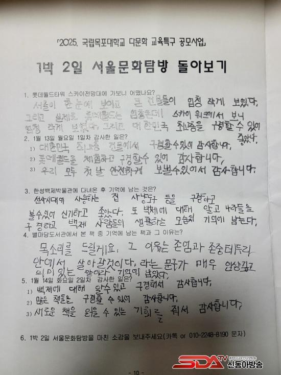 À̹ø 1¹Ú 2ÀÏ ¼­¿ï¹®È­Å½¹æÀº ¸ñÆ÷ÇÏ´çÁßÇб³ ±³À°º¹Áö½Ç¿¡¼­ ÁÖ°üÇÑ Çà»ç·Î ±¹¸³¸ñÆ÷´ëÇб³ ´Ù¹®È­ ±³À°Æ¯±¸ °ø¸ð»ç¾÷¿¡ ¼±Á¤µÇ¾î ¿¹»êÀ» Áö¿ø¹Þ¾Æ ¿î¿µµÈ ÇÁ·Î±×·¥ÀÌ´Ù.