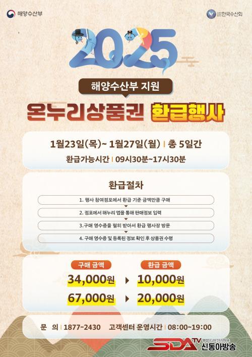 Çà»ç ±â°£ Áß ¿ÀÀ̵µÀüÅë¼ö»ê½ÃÀå ³» Âü¿© Á¡Æ÷ 44°÷¿¡¼ ´çÀÏ °áÁ¦ÇÑ ¿µ¼öÁõ°ú ½ÅºÐÁõÀ» ÁöÂüÇϰí, ¿ÀÀü 9½Ã 30ºÐºÎÅÍ ¿ÀÈÄ 5½Ã 30ºÐ±îÁö ȯ±Þ ºÎ½º¸¦ ¹æ¹®ÇÏ¸é ±¸ÀÔ ±Ý¾×¿¡ µû¶ó Çà»ç ±â°£ ³» 1Àδç ÃÖ´ë 2¸¸ ¿ø±îÁö ¿Â´©¸®»óǰ±ÇÀ» ȯ±Þ¹ÞÀ» ¼ö ÀÖ´Ù.