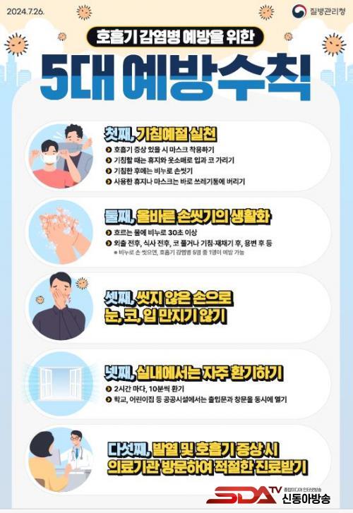 ¼³ ¸íÀý ±â°£ ´ë±Ô¸ð À̵¿°ú °í·ÉÀÚ¿ÍÀÇ Á¢ÃË Áõ°¡°¡ ¿¹»óµÇ´Â ¸¸Å, ÀÎõ½Ã´Â ½Ã¹Îµé¿¡°Ô °³ÀÎ ¹æ¿ª ¼öÄ¢À» öÀúÈ÷ ÁؼöÇÒ °ÍÀ» ´çºÎÇß´Ù. ¡ã È£Èí±â Áõ»ó ½Ã ¸¶½ºÅ© Âø¿ëÇϱâ(±âħ¿¹Àý Áؼö)¡ã¿Ã¹Ù¸¥ ¼Õ ¾Ä±â ¡ã¾ÄÁö ¾ÊÀº ¼ÕÀ¸·Î ´«, ÄÚ, ÀÔ ¸¸ÁöÁö ¾Ê±â ¡ã½Ç³» ÀÚÁÖ È¯±â ¡ã¹ß¿ ¹× È£Èí±â Áõ»ó ¹ß»ý ½Ã ÀÇ·á±â°ü ¹æ¹® µîÀÇ È£Èí±â °¨¿°º´ ¿¹¹æÀ» À§ÇÑ 5´ë ¿¹¹æ¼öÄ¢ÀÌ °Á¶µÆ´Ù.