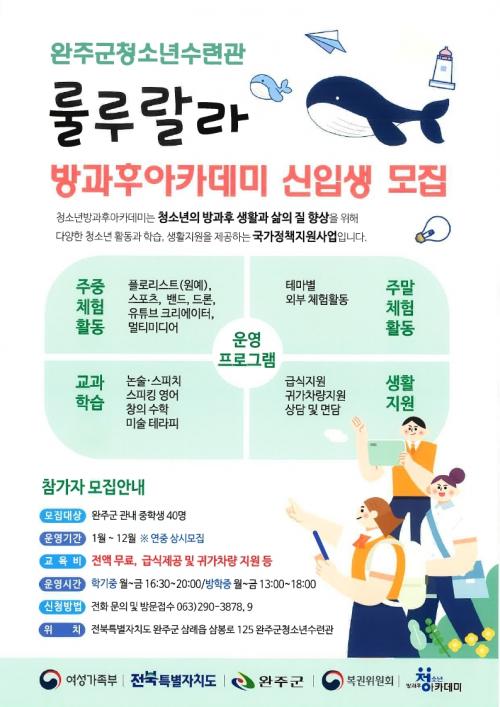 ½Åû ¹× ÀÚ¼¼ÇÑ »çÇ×Àº ¿ÏÁÖ±ºÃ»¼Ò³â¼ö·Ã°ü(063-290-3878)À¸·Î ¹®ÀÇÇÏ¸é µÈ´Ù.