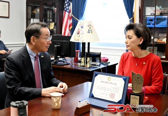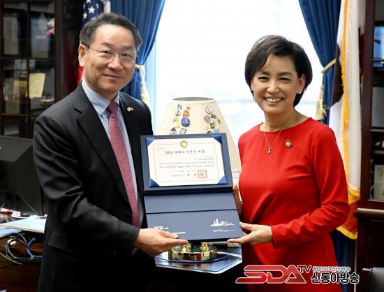 À¯ ½ÃÀåÀº ¿µ ±è ÀÇ¿ø¿¡°Ô ¡®2024 ¿ÃÇØÀÇ ÀÎõÀÎ ´ë»ó¡¯À» ¼ö¿©Çϸç, Ÿ±¹¿¡¼ ¿¬¹æ ÇÏ¿øÀÇ¿ø 3¼±À̶ó´Â ¼º°ú¸¦ ÀÌ·é °Í¿¡ ´ëÇØ ±íÀº °¨»ç¸¦ ÀüÇß´Ù. ¶ÇÇÑ ¹Ì±¹ Á¤Ä¡ ¹ßÀü°ú Çѹ̵¿¸Í °ü°è ÁõÁø¿¡ ´ëÇÑ Áö¼ÓÀûÀÎ ±â¿© ´çºÎ¿Í ¿ÃÇØ 9¿ù °³ÃֵǴ Á¦75ÁÖ³â ÀÎõ»ó·úÀÛÀü ±â³äÇà»ç ÃëÁö¸¦ ¼³¸íÇϰí Âü¼®À» ¿äûÇß´Ù.