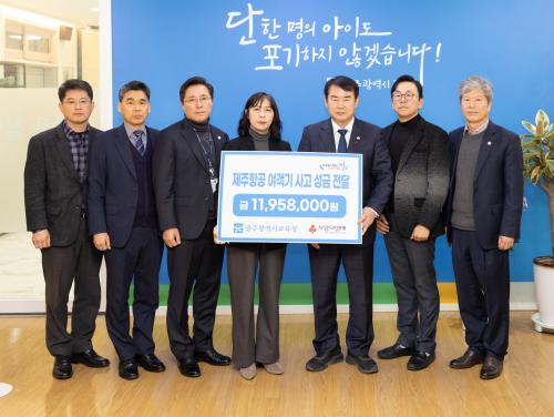 ¾Õ¼ ½Ã±³À°Ã»Àº ±¤ÁÖÈñ¸Á»ç´Ù¸®±³À°Àç´ÜÀ» ÅëÇØ Á¦ÁÖÇ×°ø ¿©°´±â Âü»ç Çлý À¯°¡Á·¿¡°Ô 1Àδç 250¸¸ ¿øÀ» Áö¿øÇϱâ·Î Çß´Ù. ¶Ç °ü·Ã Çлý°ú ±³Á÷¿øÀÇ Æ®¶ó¿ì¸¶ Ä¡À¯¸¦ À§ÇÑ ½É¸®¡¤Á¤¼ Áö¿øÀ» ÁøÇàÇϰí ÀÖ´Ù.