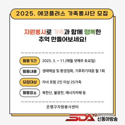 ¸ðÁý ´ë»óÀº ÀºÆò±¸¹ÎÀ¸·Î ÃÑ 25°¡Á·ÀÌ´Ù. ÀÚ³à Æ÷ÇÔ 2ÀÎ ÀÌ»ó °¡Á·±¸¼º¿øÀÌ ½ÅûÇÒ ¼ö ÀÖ´Ù. Ȱµ¿±â°£Àº ¿À´Â 3¿ùºÎÅÍ 11¿ù±îÁö ¸Å¿ù ¼Â° ÁÖ Åä¿äÀÏ 1ȸ Ȱµ¿À» Çϸç 7¿ù, 8¿ùÀº Ȱµ¿À» ÇÏÁö ¾Ê´Â´Ù.