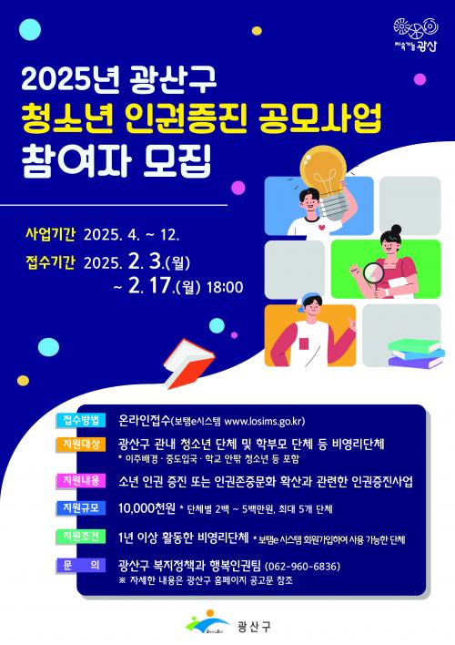 ±¤»ê±¸´Â 17ÀϱîÁö Áö¿ª¿¡¼ Ȱµ¿Çϴ û¼Ò³â ´Üü, Çкθð ´Üü µîÀ» ´ë»óÀ¸·Î »ç¾÷¿¡ Âü¿©ÇÒ ´Üü¸¦ °ø°³ ¸ðÁýÇÑ´Ù.