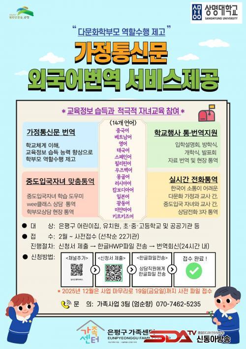 ¡®°¡Á¤Åë½Å¹® ¹ø¿ª »ç¾÷¡¯Àº ¾î¸°ÀÌÁý, À¯Ä¡¿ø, ÃʵîÇб³ µî ±³À°±â°ü¿¡¼ ¹èÆ÷ÇÏ´Â ±³À° °øÁö »çÇ×À» Åë¹ø¿ª Ȱµ¿°¡ Àü¹®±³À°À» À̼öÇÑ °áÈ¥À̹ÎÀÚµéÀÌ Á÷Á¢ 14°³ ¸ð±¹¾î·Î ¹ø¿ªÇØ Á¦°øÇÑ´Ù. ´Ù¹®È °¡Á¤ÀÌ ¾ð¾îÀû ÇѰè·Î °¡Á¤Åë½Å¹®À» ÀÌÇØÇÏÁö ¸øÇØ ¹ß»ýÇÏ´Â ±³À°Á¤º¸ ºÒ±ÕÇü°ú »ç°¢Áö´ë ÇØ¼Ò¸¦ µ½´Â´Ù.