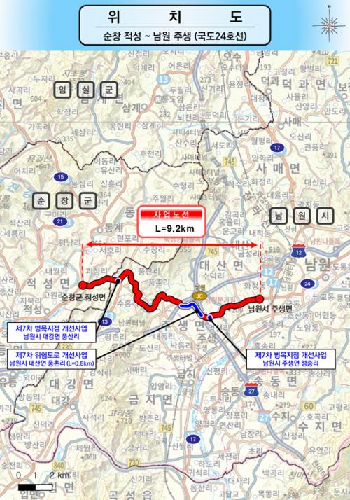 ±âȹÀçÁ¤ºÎÀÇ ¿¹ºñŸ´ç¼ºÁ¶»ç ´ë»ó¿¡ Æ÷ÇԵǾî 1Â÷ °ü¹®À» Åë°úÇÑ »ç¾÷Àº ³²¿ø½Ã Àοù¸é°ú »ê³»¸éÀ» ÀÕ´Â ±¹Áöµµ60È£¼± 2Â÷·Î °³·®»ç¾÷(L=8.4§°, 595¾ï¿ø)°ú ¼øÃ¢±º Àû¼º¸é¿¡¼­ ³²¿ø½Ã ÁÖ»ý¸éÀ» ¿¬°áÇÏ´Â ±¹µµ24È£¼± 2Â÷·Î °³·®»ç¾÷(L=9.2§°, 532¾ï¿ø)ÀÌ´Ù.