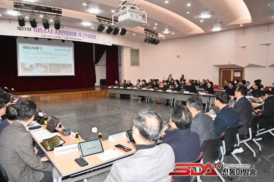 ÇÑÆí, ¡®½Ã¹ÎÂü¿© ÁÖ°£È¸ÀÇ¡¯´Â °ø¹«¿ø Áß½ÉÀÇ È¸ÀÇ¿¡¼­ ¹þ¾î³ª, ´Ù¾çÇÑ ½Ã¹ÎµéÀÇ ¸ñ¼Ò¸®¸¦ Á÷Á¢ µè°í ½ÃÁ¤¿¡ ¹Ý¿µÇϱâ À§ÇØ ºÐ±âº°·Î ¿­¸®°í ÀÖ´Ù. À̳¯ ȸÀÇ¿¡´Â À±ÅÂÇö Á¤Ã¥¸ð´ÏÅ͸µ´Ü ´ÜÀå, Çö±³Å ÁÖ¹ÎÀÚġȸ ÇùÀÇȸÀå, Àå¼¼Áø Çϳ²½Ã º¸ÈÆÇùÀÇȸ ȸÀå, À±¹Ì¾Ö °æ±âµµ ¿©¼º´ÜüÇùÀÇȸ Çϳ²½ÃÁöȸ ȸÀå µî ½Ã¹Î´ëÇ¥¿Í Çϳ²½Ã °£ºÎ°ø¹«¿ø 140¿©¸íÀÌ Âü¼®Çß´Ù.