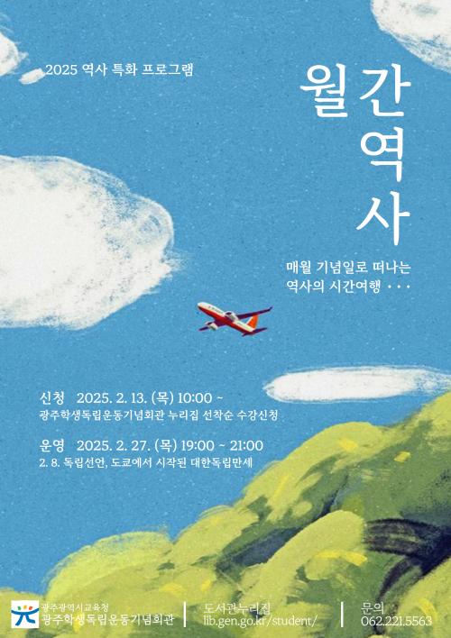 2¿ù °¿¬ ½ÅûÀº ¿À´Â 25ÀϱîÁö ±¤ÁÖÇлýµ¶¸³¿îµ¿±â³äȸ°ü ´©¸®Áý(http://lib.gen.go.kr/student)¿¡¼ ȸ¿ø°¡ÀÔ ÈÄ ÇÒ ¼ö ÀÖ´Ù. ¼±Âø¼ø 30¸íÀ» ¸ðÁýÇϸç Âü°¡ºñ´Â ¹«·áÀÌ´Ù. ÀÚ¼¼ÇÑ ³»¿ëÀº ±¤ÁÖÇлýµ¶¸³¿îµ¿±â³äȸ°ü ´©¸®ÁýÀ» Âü°íÇϰųª ¹®ÇåÁ¤º¸°ú(062-221-5563)·Î ¹®ÀÇÇÏ¸é µÈ´Ù.