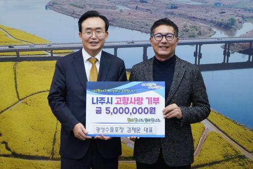 À±º´Å ³ªÁÖ½ÃÀåÀº ¡°±¤¼º¼öÃâÆ÷Àå(ÁÖ) ±èÀç¹® ´ëÇ¥´ÔÀÇ ²ÙÁØÇÑ °ü½É°ú ±âºÎ¿¡ ±íÀº °¨»ç¸¦ µå¸°´Ù¡±¸ç ¡°¾ÕÀ¸·Îµµ ±â¾÷°ú Áö¿ª»çȸ°¡ ÇÔ²² °øÁ¸Çϴ ȯ°æÀ» ¸¸µé¾î ³ª°¡µµ·Ï ÃÖ¼±À» ´ÙÇϰڴ١±°í ÀüÇß´Ù.
