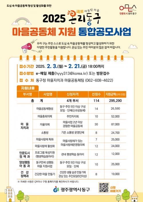 ±¤ÁÖ µ¿±¸, 2025³â ¿Â¸®µ¿±¸ ¸¶À»°øµ¿Ã¼ Áö¿ø ÅëÇÕ°ø¸ð»ç¾÷ ÃßÁø