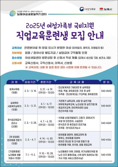 ±èÁ¦½Ã, 2025³â ¿©¼º°¡Á·ºÎ ±¹ºñ ¹«·á Á÷¾÷±³À°ÈƷûý ¸ðÁý