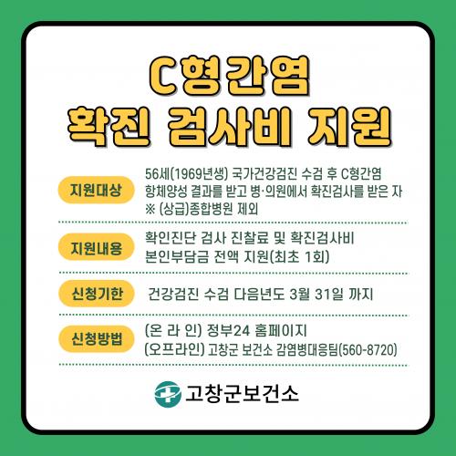 Áö¿ø ´ë»óÀº 56¼¼(1969³â»ý) ±¹°¡°Ç°°ËÁø ¼ö°Ë ÈÄ CÇü°£¿° Ç×ü ¾ç¼º ÆÇÁ¤À» ¹Þ°í º´‧ÀÇ¿ø¿¡¼((»ó±Þ)Á¾ÇÕº´¿ø Á¦¿Ü) È®Áø °Ë»ç¸¦ ¹ÞÀº ±º¹ÎµéÀÌ´Ù.
