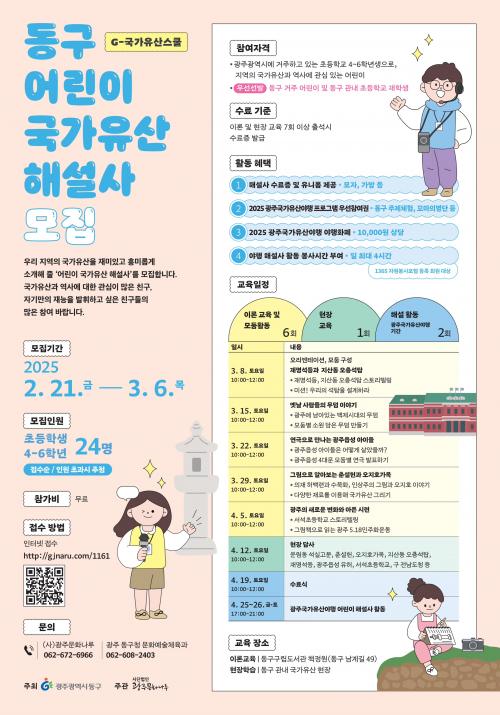 ±³À° ÀÏÁ¤Àº Áö¿ªÀÇ ±¹°¡ À¯»ê°ú ¿ª»ç¸¦ ¾Ë¾Æº¸´Â ¡ãÀÌ·Ð ±³À° ¡ãÇöÀå ±³À° ¡ãÇØ¼³ ½Ç½À µî ÃÑ 9ȸ¿¡ °ÉÃÄ ÁøÇàµÈ´Ù. ¼ö·áÇÑ ¾î¸°ÀÌ´Â ¿À´Â 4¿ù 25~26ÀÏ¿¡ ¿¸®´Â ±¤ÁÖ ±¹°¡ À¯»ê ¾ßÇà ¡®µ¹ÀÇ(ëù) ½Ã°£¡¯¿¡¼ ¡®µ¿±¸ ¾î¸°ÀÌ ±¹°¡ À¯»ê ÇØ¼³»ç¡¯·Î Ȱµ¿ÇÏ°Ô µÈ´Ù.