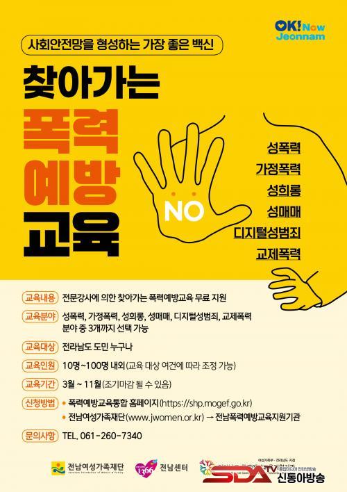 ❏ Àç´ÜÀº Áö³ 2015³âºÎÅÍ Àü³²Æø·Â¿¹¹æ±³À°Áö¿ø±â°üÀ¸·Î ÁöÁ¤µÇ¾î ±³À°À» ¹ÞÀº µµ¹ÎÀÌ Æø·Â¿¡ ´ëÇÑ ¹Î°¨¼ºÀ» Çâ»ó½Ãų ¼ö ÀÖµµ·Ï ¹«·á·Î ±³À°À» Áö¿øÇؿԴÙ.