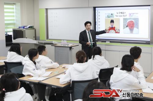 ÀÌ¾î ¸ù°ñ Ãâ½Å Çлýµé°ú ÇÔ²²ÇÑ ¡®ÈÆó ¼Ó ¿ª»çÀû Àι°¡¯ ¼ö¾÷¿¡¼´Â Çѱ¹ÀÇ ¼¼Á¾´ë¿Õ°ú ¸ù°ñÀÇ Äª±âÁîÄÀ» ºñ±³ÇÏ¸ç µÎ ÁöµµÀÚÀÇ °øÅëÁ¡À» ã¾Æº¸´Â Ȱµ¿ÀÌ ÁøÇàµÆ´Ù. ±è´ëÁß ±³À°°¨Àº µÎ ÁöµµÀÚÀÇ ¾÷ÀûÀ» Á÷Á¢ ¼³¸íÇϸç ÇлýµéÀÇ ¿ª»ç¡¤¹®ÈÀû ÀÌÇØ¸¦ ³ÐÈ÷µµ·Ï µµ¿Ô´Ù.