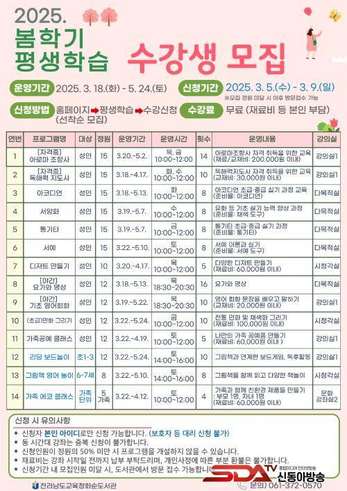 [½Åµ¿¾Æ¹æ¼Û Àü³²È­¼ø=À̽ŵ¿±âÀÚ] Àü¶ó³²µµ±³À°Ã»È­¼øµµ¼­°üÀº 2025³âµµ º½Çб⸦ ¸Â¾Æ 3¿ù 18ÀÏ(È­)ºÎÅÍ 5¿ù 24ÀÏ(Åä)±îÁö ´Ù¾çÇÑ Æò»ýÇнÀ ÇÁ·Î±×·¥À» ¸¶·ÃÇß´Ù. ƯÈ÷ ¿ÃÇØ´Â Çлý°ú À¯¾Æ¸¦ À§ÇÑ ÇÁ·Î±×·¥ÀÌ »õ·Ó°Ô Ãß°¡µÇ¾î ´õ¿í Æø³ÐÀº ±³À° ȯ°æÀ» Á¦°øÇÑ´Ù.
