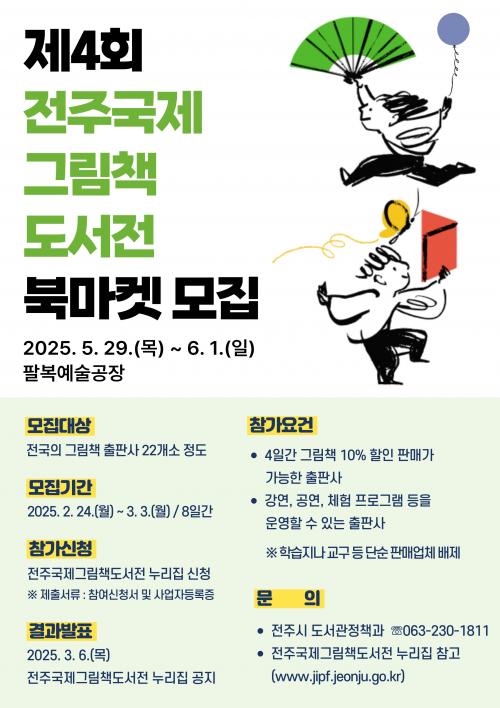 Âü¿©¸¦ Èñ¸ÁÇÏ´Â ÃâÆÇ»ç´Â ÀüÁÖ±¹Á¦±×¸²Ã¥µµ¼Àü ´©¸®Áý(jipf.jeonju.go.kr)¿¡¼ ³»·Á¹ÞÀº ½Åû¼¸¦ ÀÛ¼ºÇØ »ç¾÷ÀÚµî·ÏÁõ »çº» µî ±¸ºñ¼·ù¿Í ÇÔ²² ¿Â¶óÀÎÀ¸·Î Á¦ÃâÇÏ¸é µÈ´Ù. ±âŸ ÀÚ¼¼ÇÑ »çÇ×Àº ÀüÁÖ±¹Á¦±×¸²Ã¥µµ¼Àü ´©¸®ÁýÀ» Âü°íÇϰųª, ÀüÈ(063-230-1811)·Î ¹®ÀÇÇÏ¸é µÈ´Ù.