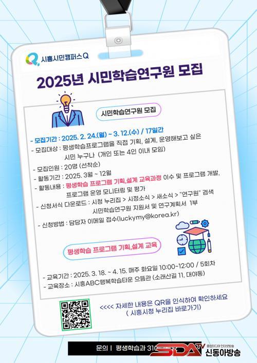 ½Ã¹ÎÇнÀ¿¬±¸¿øÀº Æò»ýÇнÀ ÇÁ·Î±×·¥ÀÇ ±âȹ°ú ¼³°è¿¡ Âü¿©Çϰí, ¿î¿µ ÇÁ·Î±×·¥ÀÇ Á¡°Ë ¹× Æò°¡ Ȱµ¿À» 3¿ùºÎÅÍ 12¿ù±îÁö ÁøÇàÇÏ°Ô µÈ´Ù. À̸¦ À§ÇØ ½ÃÈïABCÇູÇнÀŸ¿î¿¡¼ ÁøÇàµÇ´Â 5ȸÂ÷ Æò»ýÇнÀ ÇÁ·Î±×·¥ ±âȹ ±³À°À» 3¿ù 18ÀϺÎÅÍ 4¿ù 15ÀϱîÁö À̼öÇØ¾ß ÇÑ´Ù.