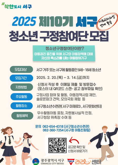 ¿ÃÇØ ¸ðÁý ´ë»óÀº ±¤ÁÖ ¼±¸¿¡ °ÅÁÖÇϰųª Ȱµ¿ÇÏ´Â 9¼¼ ÀÌ»ó 18¼¼ ¹Ì¸¸ ¾Æµ¿À̸ç 3¿ù 14ÀϱîÁö ¼±¸Ã» ¾ç¼º¾Æµ¿º¹Áö°ú¿¡ ¹æ¹®Çϰųª ÀüÀÚ¿ìÆí(gjsu4320@naver.com)À¸·Î °ü·Ã ¼·ù¸¦ Á¦ÃâÇÏ¸é µÈ´Ù. ±âŸ ÀÚ¼¼ÇÑ »çÇ×Àº ¼±¸Ã» ¾ç¼º¾Æµ¿º¹Áö°ú(062-360-7254) ¶Ç´Â ¼±¸Ã»¼Ò³â¼ö·Ã°ü(062-654-4318)À¸·Î ¹®ÀÇÇÏ¸é µÈ´Ù.