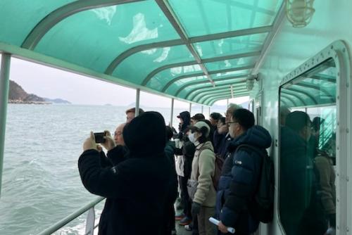 Âü¿©ÇÑ ¿©Çà¾÷ °ü°èÀÚµéÀº ¸»µµÇà ¿©°´¼±¿¡ ½Â¼±ÇÏ¿© ÇØ»ó Åõ¾î¸¦ Áñ±â°í ¼±À¯µµ µî ÇØ¾ç°ü±¤¸í¼Ò¸¦ µÑ·¯º» µÚ, ±º»ê½Ã¿Í Çѱ¹°ü±¤°ø»ç °ü°èÀÚµé°ú ÇØ¾ç°ü±¤ Ȱ¼ºÈ¸¦ À§ÇÑ °£´ãȸ¿¡ Âü¼®Çß´Ù.