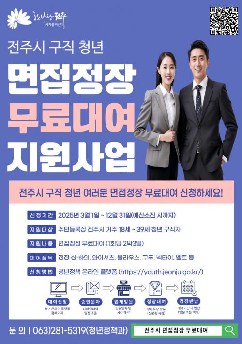¸éÁ¢Á¤Àå ¹«·á ´ë¿©¸¦ ¿øÇϴ û³âÀº 1ÀÎ´ç ¿¬3ȸ(2¹Ú3ÀÏ) ¿¹»ê ¼ÒÁø ½Ã±îÁö ÀüÁֽà û³â ¿Â¶óÀÎÇ÷§Æû(youth.jeonju.go.kr)À» ÅëÇØ ¿Â¶óÀÎÀ¸·Î ½ÅûÇÑ ÈÄ ¾÷ü¸¦ ¹æ¹®ÇÏ¸é µÈ´Ù.