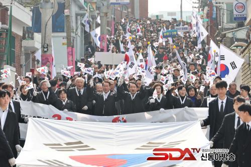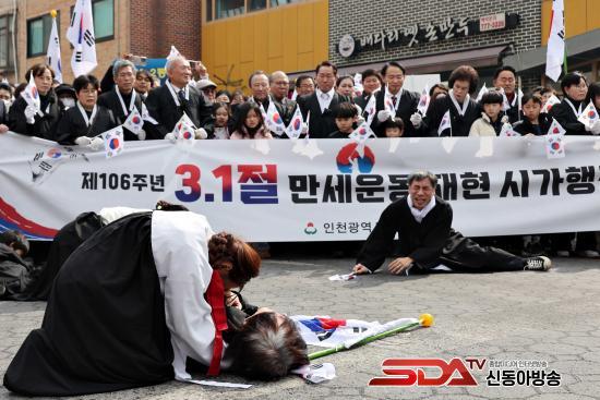 ±â³ä½Ä¿¡ ÀÌ¾î ¿¸° 3.1¿îµ¿ ¸¸¼¼¿îµ¿ ÀçÇö ½Ã°¡ ÇàÁø¿¡´Â À¯Á¤º¹ ÀÎõ½ÃÀåµµ Âü¿©ÇØ ´«±æÀ» ²ö °¡¿îµ¥ ±â³ä½Ä Âü¿©ÀÚ Àü¿øÀÌ Å±ر⸦ Èçµé¸ç ¡°´ëÇѵ¶¸³ ¸¸¼¼¡±¸¦ ¿ÜÃÆ´Ù. Âü¿©ÀÚµéÀº ⿵ÃÊ~¹è´Ù¸® »ï°Å¸®~µ¿ÀÎõ¿ª ºÏ±¤Àå±îÁö 1§°¸¦ ÇàÁøÇÏ¸ç µ¶¸³¿îµ¿°¡µéÀÇ ¹ßÀÚÃ븦 µû¶ú´Ù.