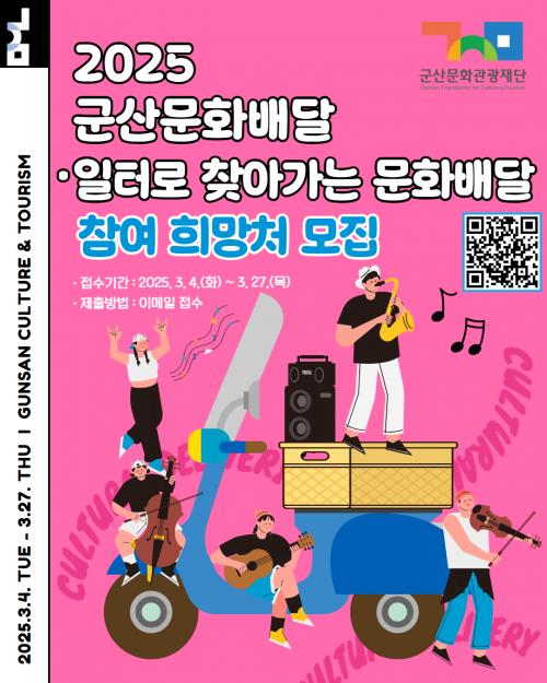¡®±º»ê ¹®È¹è´Þ¡¯Àº ½Ã¹Î°ú ±º»ê½Ã ¼ÒÀç ±â¾÷ ÀÓÁ÷¿øµéÀ» ´ë»óÀ¸·Î °ø¿¬ ¹æ¹® ¹× ³îÀÌ ¹è´ÞÀ» ¼ºñ½ºÇÏ´Â »ç¾÷ÀÌ´Ù.