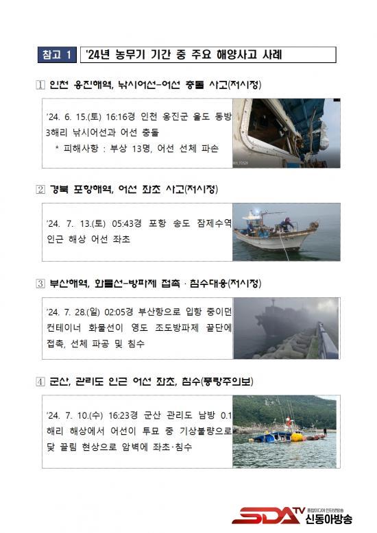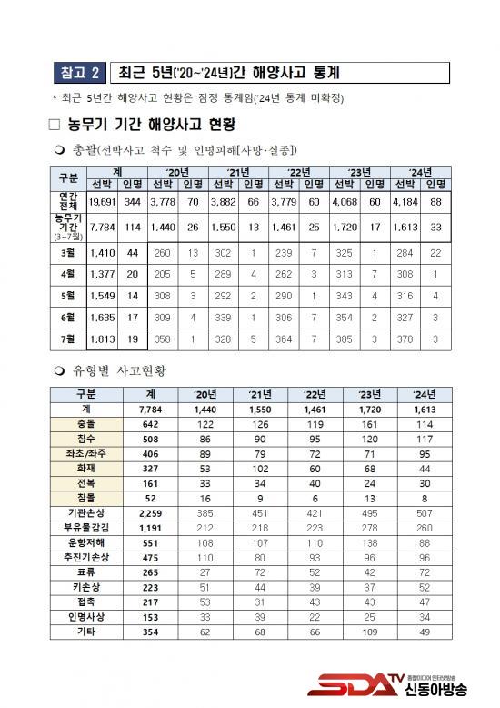 ¡¯24³âµµ ³ó¹«±â ±â°£ Áß ÇØ¾ç»ç°í´Â ¼±¹Ú 1,613ô, ÀθíÇÇÇØ 33¸íÀÌ ¹ß»ýÇßÀ¸¸ç, ¡¯23³â¿¡ ºñÇØ »ç°í´Â ´Ù¼Ò °¨¼Ò(1,720¡æ1,613ô)ÇßÀ¸³ª ÀθíÇÇÇØ´Â Áõ°¡(17¡æ33¸í)ÇÏ¿´´Ù.