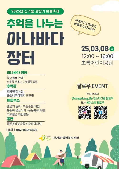 ¾Æ³ª¹Ù´Ù ÀåÅÍ´Â ÁÖ¹ÎÂü¿©¿¹»ê»ç¾÷À¸·Î ¼±Á¤µÈ ¸¶À» ÃàÁ¦ÀÇ ÀÏȯÀ¸·Î, ¡®¾Æ²¸ ¾²°í ³ª´²¾²°í, ¹Ù²ã¾²°í, ´Ù½Ã ¾²ÀÚ¡¯´Â Àǹ̸¦ ´ã¾Æ ½Å°¡µ¿ ÁֹεéÀÌ Âü¿©ÇØ »ýȰ¿ëǰ, ÀÇ·ù, µµ¼ µîÀ» »ç°íÆÈ¸ç ÀÚ¿ø ¼øÈ¯ÀÇ °¡Ä¡¸¦ ½ÇÇöÇÏ´Â ÀÚ¸®´Ù.