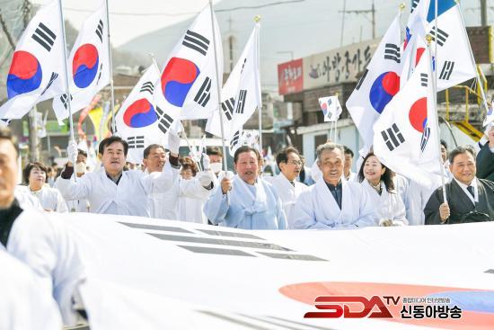 1ºÎ Çà»ç¿¡¼´Â 3¡¤9µ¶¸³¸¸¼¼¿îµ¿ ±â·Ï¹° »ó¿µ, ±¹¹ÎÀÇ·Ê, °æ°úº¸°í, µ¶¸³¼±¾ð¼ ³¶µ¶, 3¡¤1Àý ³ë·¡Á¦Ã¢, ¸¸¼¼»ïâ µîÀÇ ¼øÀ¸·Î ÁøÇàµÆ´Ù. ¸¸¼¼»ïâ ÈÄ À¯Á· ¹× ȸ¿ø, ÁÖ¹Î, ÇлýµéÀº À̷ɺб³ ¿îµ¿Àå¿¡¼ ÀÌ·É »ï°Å¸®±îÁö ½Ã°¡ÇàÁøÀ» Çϸç 106³â Àü ±×³¯ÀÇ °¨µ¿À» ÀçÇöÇß´Ù.