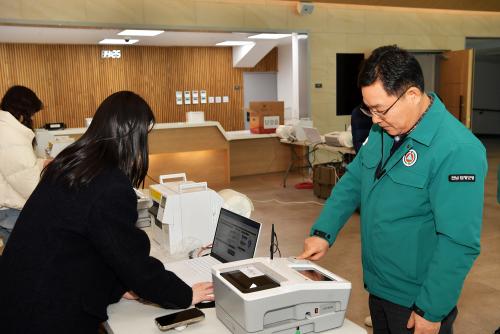 Á¤±¤¼± ±º¼ö±ÇÇÑ´ëÇàÀº ´ã¾çÀ¾ »çÀüÅõÇ¥ ¸ðÀǽÃÇè Àå¼Ò¸¦ ¹æ¹®ÇØ Áغñ »óȲÀ» È®ÀÎÇϸç Á÷¿øÀ» °Ý·ÁÇÏ´Â ÇÑÆí ¡°ÀåºñÀÇ ¿î¿ë ¿ä·É°ú ÀýÂ÷ µîÀ» Á¤È®ÇÏ°Ô ¼÷ÁöÇØ Â÷Áú ¾øÀÌ »çÀüÅõÇ¥¸¦ ÁøÇàÇÒ ¼ö ÀÖµµ·Ï ÁغñÇØ ÁÖ±æ ¹Ù¶õ´Ù¡±¶ó°í ´çºÎÇß´Ù.