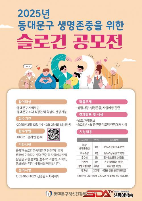 ½Ã»ó½ÄÀº 4¿ù 29ÀÏ µ¿´ë¹®±¸Ã» ±âȹ»óȲ½Ç¿¡¼ °³ÃֵǴ ¡®ÀÚ»ì ¿¹¹æ Àü¹®°¡ Æ÷·³¡¯¿¡¼ ÁøÇàµÉ ¿¹Á¤ÀÌ´Ù. ÃâǰµÈ ½½·Î°ÇÀº µ¿´ë¹®±¸ Á¤½Å°Ç°º¹Áö¼¾ÅÍ¿¡ ±Í¼ÓµÇ¸ç, »ý¸í Á¸Áß ¹× ÀÚ»ì ¿¹¹æ »ç¾÷À» À§ÇÑ È«º¸¹°(Çö¼ö¸·, ¸®Ç÷¿, ¼ÒÃ¥ÀÚ µî) Á¦ÀÛ ½Ã Ȱ¿ëµÈ´Ù.