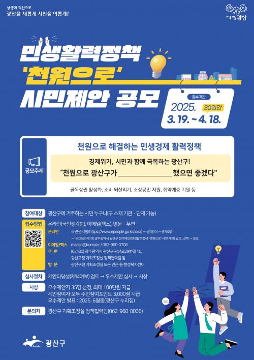 ±¤»ê±¸´Â 19ÀϺÎÅÍ 4¿ù 18ÀϱîÁö ¹Î»ý Ȱ·Â Á¤Ã¥ ¡®Ãµ¿øÀ¸·Î¡¯ ½Ã¹Î Á¦¾È °ø¸ðÀüÀ» ÁøÇàÇÑ´Ù°í ¹àÇû´Ù.