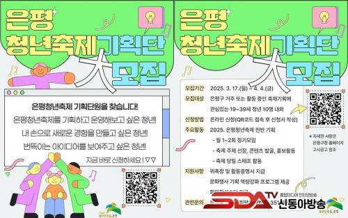 ¸ðÁý ´ë»óÀº ÀºÆò±¸¿¡¼ Ȱµ¿ÇÏ´Â 19¼¼¿¡¼ 39¼¼±îÁöÀÇ Ã»³â 10¿© ¸íÀ¸·Î, ¹®È±âȹ¿¡ °ü½ÉÀÌ Àְųª û³âÃàÁ¦¿¡ ±â¿©ÇϰíÀÚ Çϴ û³âÀÌ¸é ´©±¸³ª ½Åû °¡´ÉÇÏ´Ù.