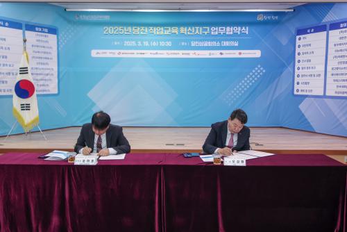 À̹ø Çù¾àÀº 2024³â Çù¾à¿¡ ÀÌÀº µÎ ¹øÂ° Çù¾àÀ¸·Î, ´çÁø±³À°Áö¿øÃ»°ú 11°³ ±â¾÷ °ü°èÀÚ°¡ Âü¼®ÇÑ °¡¿îµ¥ ÁøÇàµÆÀ¸¸ç, 2025³â ´çÁø Á÷¾÷±³À° Çõ½ÅÁö±¸ Âü¿© ±â¾÷À» Ãß°¡·Î ¸ðÁýÇØ ±â¾÷ ¸ÂÃãÇü ÀÎÀ縦 À°¼ºÇϰí À̵éÀÇ Ãë¾÷°ú Á¤ÂøÀ» Áö¿øÇϰíÀÚ Ã¼°áµÇ¾ú´Ù.