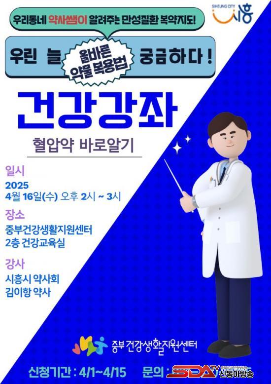 [½Åµ¿¾Æ¹æ¼Û ½ÃÈï½Ã=À̽ŵ¿±âÀÚ] ½ÃÈï½Ã Áߺΰǰ­»ýȰÁö¿ø¼¾ÅÍ´Â ¿À´Â 4¿ù 16ÀÏ ¿ÀÈÄ 2½ÃºÎÅÍ 3½Ã±îÁö ¼¾ÅÍ 2Ãþ °Ç°­±³À°½Ç¿¡¼­ ¡®Ç÷¾Ð¾à ¹Ù·Î ¾Ë±â¡¯¸¦ ÁÖÁ¦·Î °Ç°­°­Á¸¦ °³ÃÖÇÑ´Ù. À̹ø °­Á¿¡´Â ½ÃÈï½Ã ¾à»çȸ ±èÀÌÇ× ¾à»ç°¡ °­»ç·Î ³ª¼­ ¸¸¼ºÁúȯ °ü¸®¸¦ À§ÇÑ ¿Ã¹Ù¸¥ Ç÷¾Ð¾à º¹¿ë¹ýÀ» ¾È³»ÇÑ´Ù.