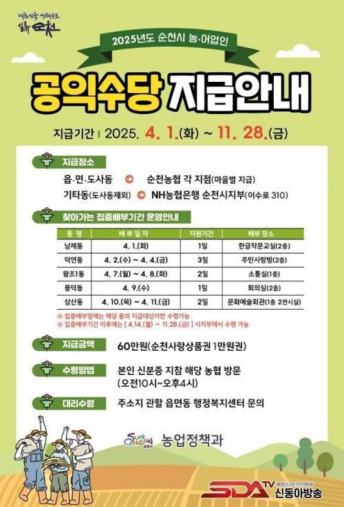 ³ó¾î¹Î °øÀͼö´çÀº ¿¬ 60¸¸ ¿øÀÌ Áö±ÞµÇ¸ç, Áö¿ª°æÁ¦ Ȱ¼ºÈ¸¦ À§ÇØ ¼øÃµ»ç¶û»óǰ±ÇÀ¸·Î Á¦°øµÈ´Ù. ¿ÃÇØ ¼øÃµ½Ã °øÀͼö´ç Áö±Þ ´ë»óÀÚ´Â ÃÑ 15,718¸íÀ̸ç, ¿¹»ê ±Ô¸ð´Â ¾à 94¾ï ¿ø¿¡ ´ÞÇÑ´Ù.