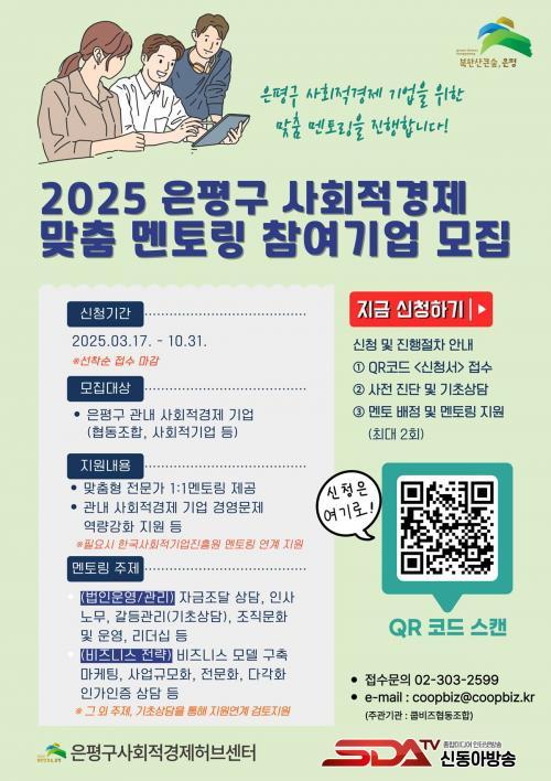 [½Åµ¿¾Æ¹æ¼Û ÀºÆò±¸=À̽ŵ¿±âÀÚ] ÀºÆò±¸´Â °ü³» »çȸÀû°æÁ¦±â¾÷ÀÇ ¼ºÀå Áö¿ø°ú °æ¿µ ¿ª·® °­È­¸¦ À§ÇØ ¡®2025³â ÀºÆò±¸ »çȸÀû°æÁ¦ ¸àÅ丵 »ç¾÷¡¯À» ¿î¿µÇϰí ÀÌ¿¡ Âü¿©ÇÒ ±â¾÷À» ¸ðÁýÇÑ´Ù°í ¹àÇû´Ù.
