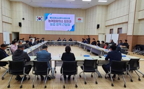 [½Åµ¿¾Æ¹æ¼Û=Á¶Á¾Çö±âÀÚ] ±èÁ¦½Ã(½ÃÀå Á¤¼ºÁÖ)´Â ³ó¾÷ ÇöÀåÀÇ ¼ÒÅë ÇàÁ¤À» ±¸ÇöÇÏ°í ¼ö¿äÀÚ Áß½ÉÀÇ ³ó¾÷Á¤Ã¥ ¹æÇâÀ» ¸ð»öÇϱâ À§ÇØ Áö³­ 27ÀÏ ³ó¾÷Àα³À°¹®È­Áö¿ø¼¾ÅÍ 2Ãþ ´ë°­´ç¿¡¼­ ³ó¾î¾÷ȸÀÇ¼Ò ÀÓ¿øµé°ú ³ó¾÷Á¤Ã¥ °£´ãȸ¸¦ °¡Á³´Ù°í ¹àÇû´Ù.