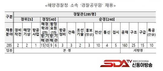 ¸ðÁý ºÐ¾ßº°·Î °æÂû°ø¹«¿øÀº ÃÑ 285¸íÀ¸·Î, °æÀ§ 5¸í(▴°æºñÀÛÀü 2¸í ▴ÇØ¾ç±â»ó 2¸í ▴Ç×°ø»ç¾÷ 1¸í), °æÀå 40¸í(▴ÇÔÁ¤¿ä¿ø 15¸í ▴ÇØ¾ç°æÂûÇаú 25¸í), ¼ø°æ 240¸í(▴Ç×°øÁ¤ºñ 3¸í ▴Á¶¼±±â¼ú 2¸í ▴È«º¸(¿µ»ó) 3¸í ▴°ÇÃà 3¸í ▴±¸±Þ 15¸í ▴°Ë½Ã 5¸í ▴°øÃ¤ 160¸í ▴±¸Á¶ 25¸í ▴Àü»ê¡¤Åë½Å 14¸í ▴Ư°ø(Àü¼ú) 10¸í)ÀÌ´Ù.