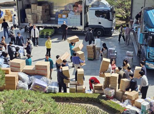 ºÏ±¸¿¡¼ ÁغñÇÑ ¡ã»ý¼ö(5,000°³) ¡ã»§(2,000°³) ¡ã¶ó¸é(315¹Ú½º) ¡ã¸¶½ºÅ©(42,000°³) ¡ã´ã¿ä(300°³) µî ÃÑ 5õ 2¹é¿©¸¸ ¿ø »ó´çÀÇ ±¸È£¹°Ç°À» ½ÇÀº Æ®·°ÀÌ ¿À´Ã ¿ÀÈÄ 3½Ã¿¡ »êû°ú Çϵ¿À¸·Î Ãâ¹ßÇß´Ù.
