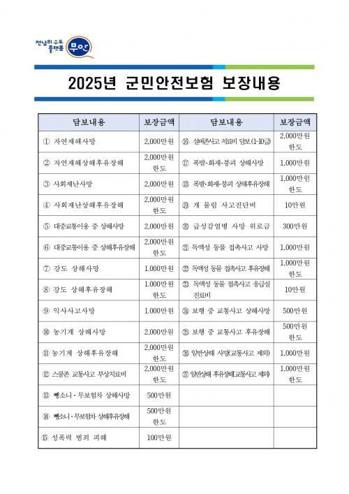 º¸ÀåÇ׸ñÀº ¡ãÀÚ¿¬ÀçÇØ »óÇØ»ç¸Á, »óÇØÈÄÀ¯ÀåÇØ ¡â³ó±â°è»ç°í »óÇØ»ç¸Á, »óÇØÈÄÀ¯ÀåÇØ, ¡ãÆø¹ß¡¤ÈÀ硤ºØ±« »óÇØ»ç¸Á, »óÇØÈÄÀ¯ÀåÇØ µî ÃÑ 27Á¾¸ñÀÌ¸ç º¸ÀåÇ׸ñ¿¡ µû¶ó ÃÖ´ë 2,000¸¸¿ø±îÁö º¸ÀåµÈ´Ù.