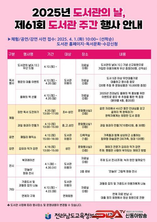 [½Åµ¿¾Æ¹æ¼Û Àü³²º¸¼º=À̽ŵ¿±âÀÚ] Àü¶ó³²µµ±³À°Ã»º¸¼ºµµ¼­°üÀº 2025³â µµ¼­°üÀÇ ³¯ ¹× µµ¼­°ü ÁÖ°£À» ¸ÂÀÌÇÏ¿© üÇè, °­¿¬, Àü½Ã, °ø¿¬ µî Áö¿ª¹ÎÀÌ Âü¿©ÇÒ ¼ö ÀÖ´Â ´Ù¾çÇÑ µ¶¼­Çà»ç¸¦ ¿î¿µÇÑ´Ù.