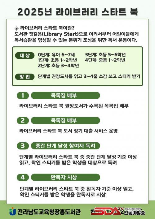 ¡®¶óÀ̺귯¸® ½ºÅ¸Æ® ºÏ¡¯Àº Àü¶ó³²µµ±³À°Ã»¿¡¼ ÃßÁøÇÏ´Â µ¶¼»ç¾÷À¸·Î ¾î¸°À̵éÀÇ ¿Ã¹Ù¸¥ µ¶¼ ½À°üÀ» ±â¸¦ ¼ö ÀÖµµ·Ï 0~4´Ü°èÀÇ ±ÇÀåµµ¼ ¸ñ·ÏÁýÀ» Ȱ¿ëÇÑ ¸ÂÃãÇü µ¶¼ Ȱµ¿À» Áö¿øÇÏ´Â µ¶¼¿îµ¿ÀÌ´Ù.